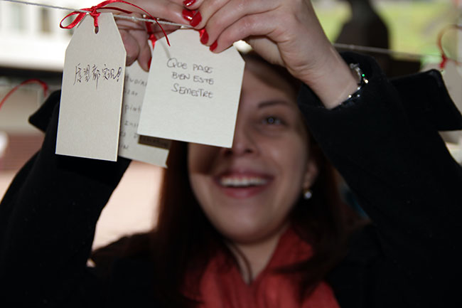 “Deseo aprender mandarín”, fue uno de los mensajes que encontramos en Las Tablillas de Buenos Augurios que atrajeron tanto a tadeístas como a curiosos que pasaban por la Plazoleta Tadeo Lozano. Fueron aproximadamente 70 personas las que escribieron sus deseos para el Instituto Confucio y las que aprovecharon para compartir sus deseos personales.