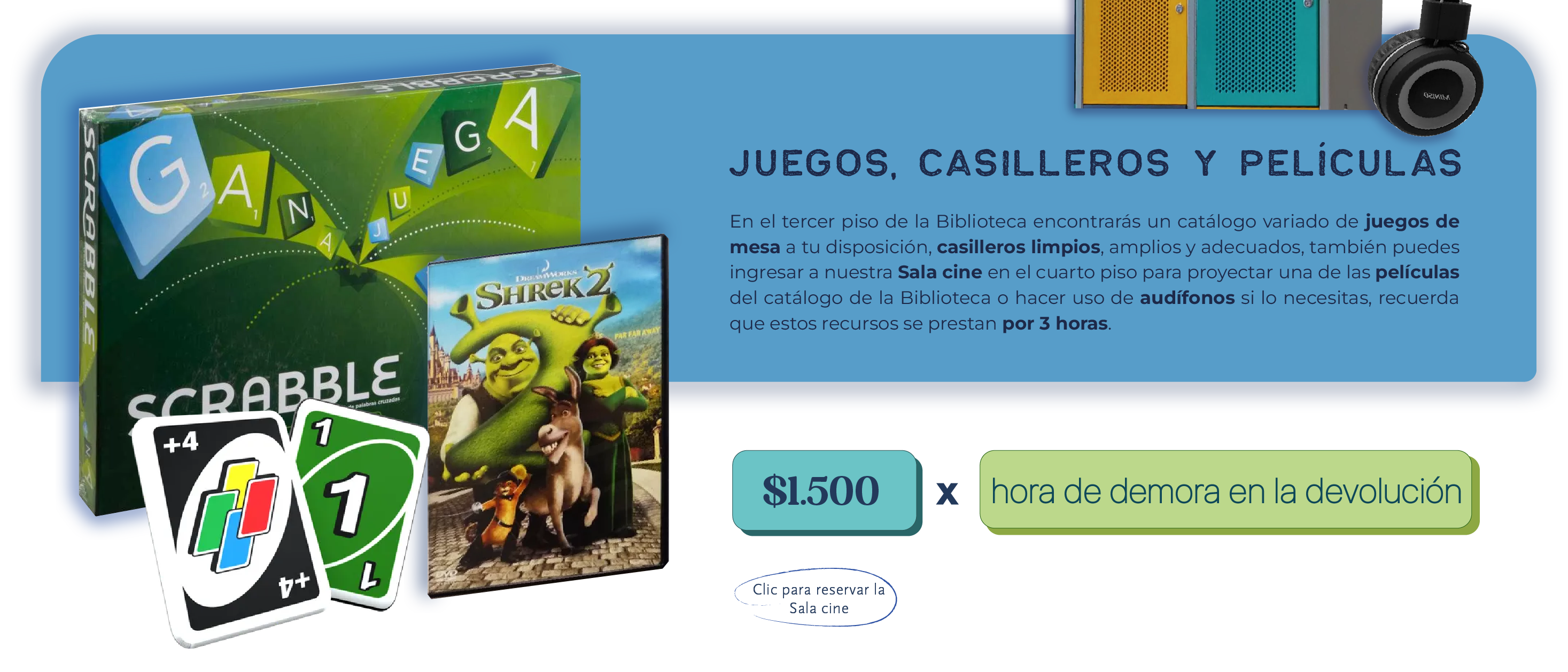 Sanción por Libros de colección de referencia y reserva. Juegos, casilleros y películas.