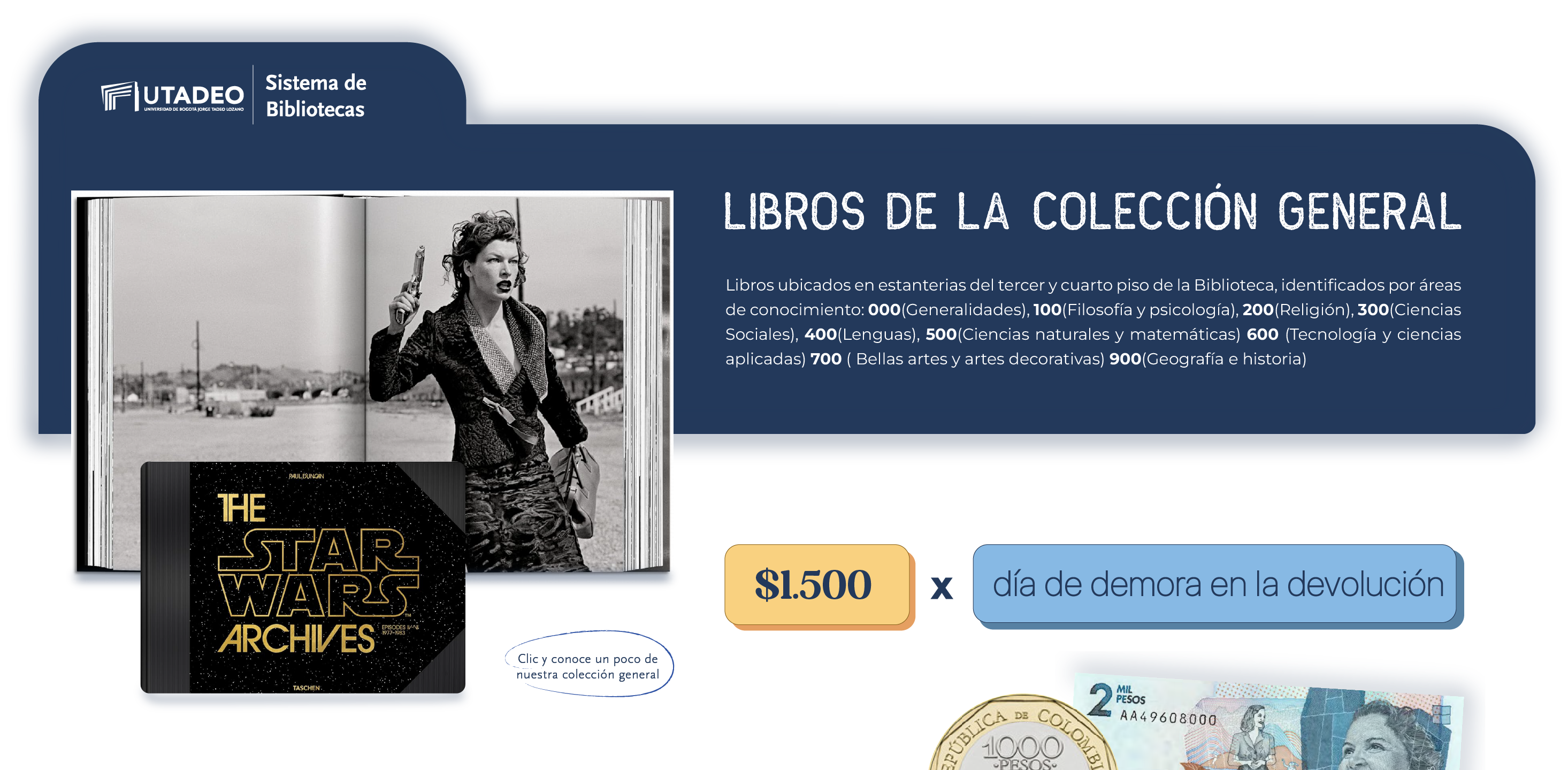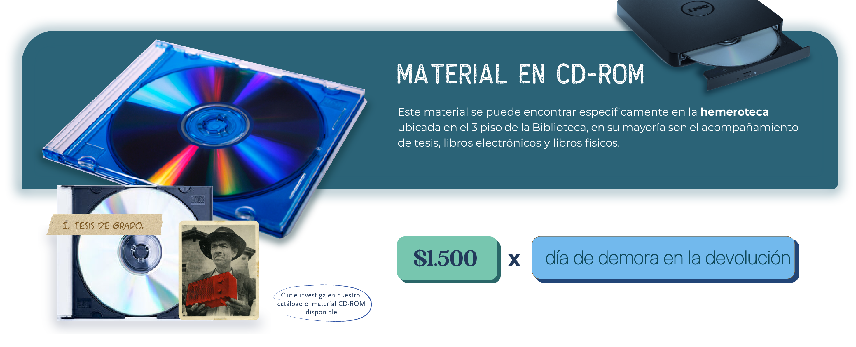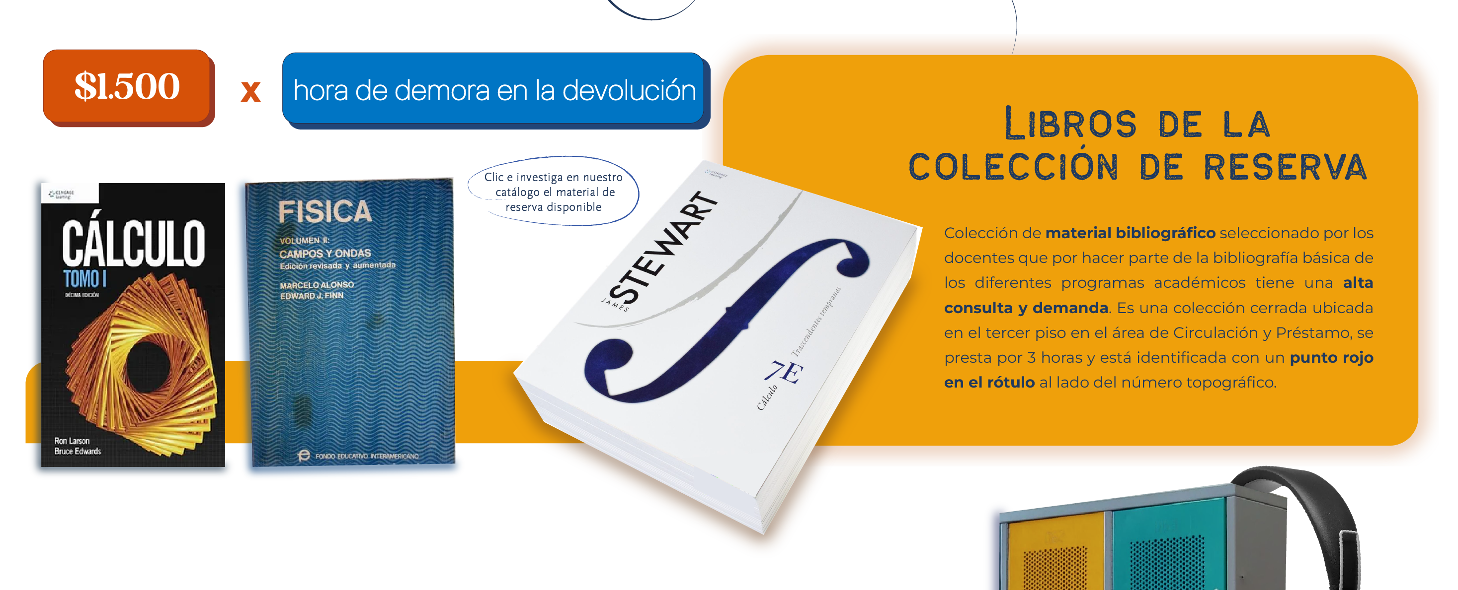 Una multa o sanción económica se genera cuando se supera la fecha límite de devolución indicada el día del préstamo del material bibliográfico. Es necesario tener en cuenta que se puede evitar la multa o sanción económica renovando el o los materiales bibliográficos prestados un día antes del vencimiento a través de nuestros canales de comunicación o directamente en su cuenta desde el Mega Buscador. A continuación podrá conocer el valor de la sanción económica según el tipo de material: |