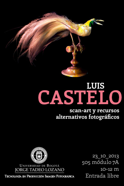 Luis Castelo es reconocido en el ámbito fotográfico como creador de imágenes a partir de tecnologías alternativas a la cámara fotográfica. El interés de Castelo en llevar a los límites la imagen fotográfica, lo llevó a explorar técnicas como el scan-art, que consiste en utilizar el scanner como soporte fotográfico. Paralela a esta exploración técnica, la biología es vinculada a estos procedimientos, generando registros taxonómicos de especies de fauna y flora, remontándonos a las colecciones taxidérmicas de los museos y libros científicos de otras épocas. Castelo nos hablará de su obra, donde la ciencia y el arte confluyen en pos de la imagen fotográfica, generada a partir de rudimentos diferentes a la cámara fotográfica, planteando una inquietud en torno al dispositivo fotográfico.