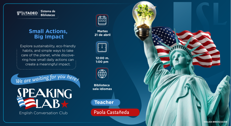 ¿Te gustaría mejorar tu inglés de una forma divertida y dinámica? ¡Este es el lugar perfecto para ti! Únete a nuestro Club de Conversación en Inglés SpeakLab, donde podrás practicar, hacer nuevos amigos y, lo mejor de todo, ¡hablar en inglés en un ambiente relajado y sin presión! No importa si eres principiante o avanzado, aquí podrás mejorar tus habilidades de conversación mientras te diviertes. ¡No te lo pierdas! Esta semana el tema es: Explore sustainability by learning how everyday choices impact the environment and the future of our planet. Discover eco-friendly habits that reduce waste, conserve energy, and protect natural resources, from recycling and mindful consumption to supporting green alternatives. Learn simple, practical ways to care for the planet that fit easily into daily life, empowering individuals and communities to create a healthier, more sustainable world for generations to come.