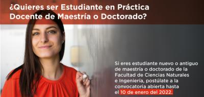 Convocatoria abierta para alumnos nuevos y antiguos para estudiante en práctica docente de la Facultad de Ciencias Naturales e Ingeniería