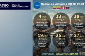 BecasJulio 01 / 2023Les invitamos a participar en las sesiones virtuales de julio, para interesados en estudiar e investigar en Alemania.