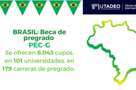BecasJunio 22 / 2023La Embajada de Brasil en Bogotá informa que están abiertas, del 7 de junio al 18 de agosto de 2023, las inscripciones al proceso selectivo del 2024 del Programa de Estudiantes-Convenio de Pregrado (PEC-G).