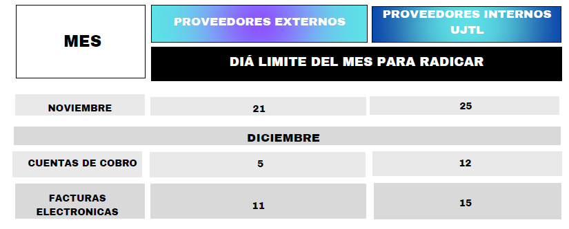 - Calendario de Radicación de Facturas