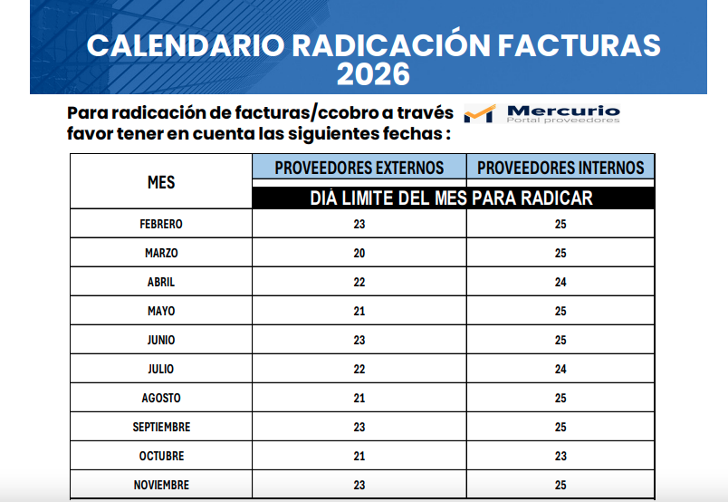 - Antes de realizar la radicación en el aplicativo Mercurio, es importante que la factura electrónica incluya la siguiente información: