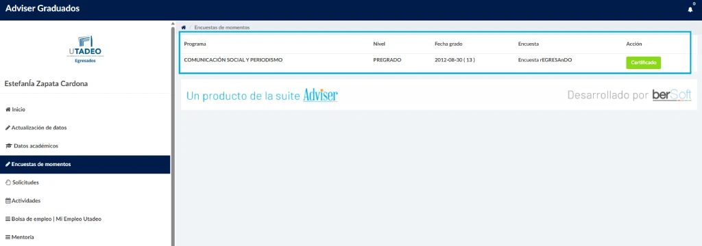 Objetivo: Incentivar la actualización de información de contacto y participación en la encuesta de seguimiento institucional por parte de los egresados, con el fin de fortalecer el vínculo y mejorar los servicios ofrecidos.