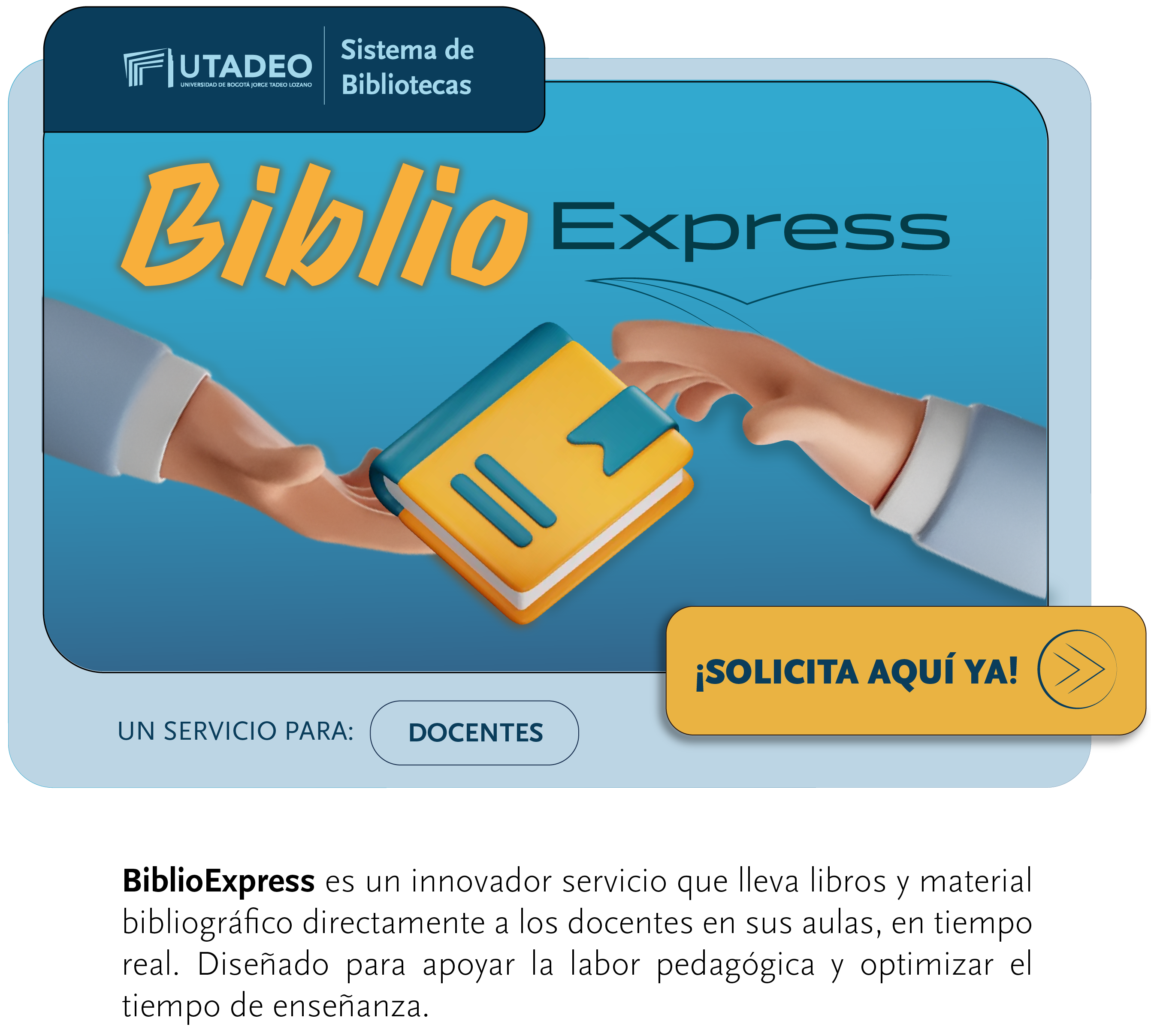 BiblioExpress Utadeo: Llevamos material bibliográfico hasta el aula. | Préstamo externo: Puedes llevar material bibliográfico a tu casa. |