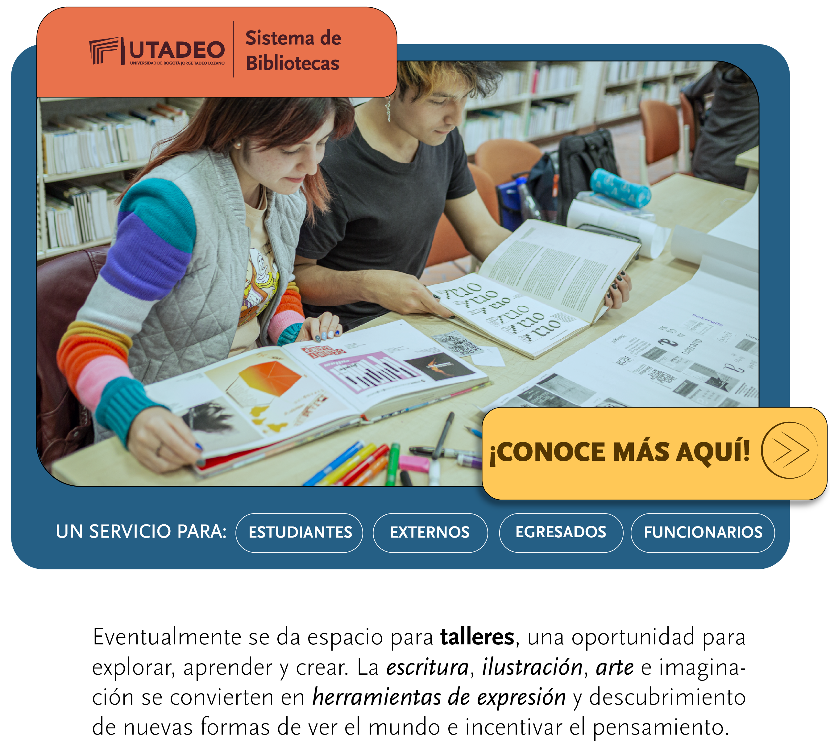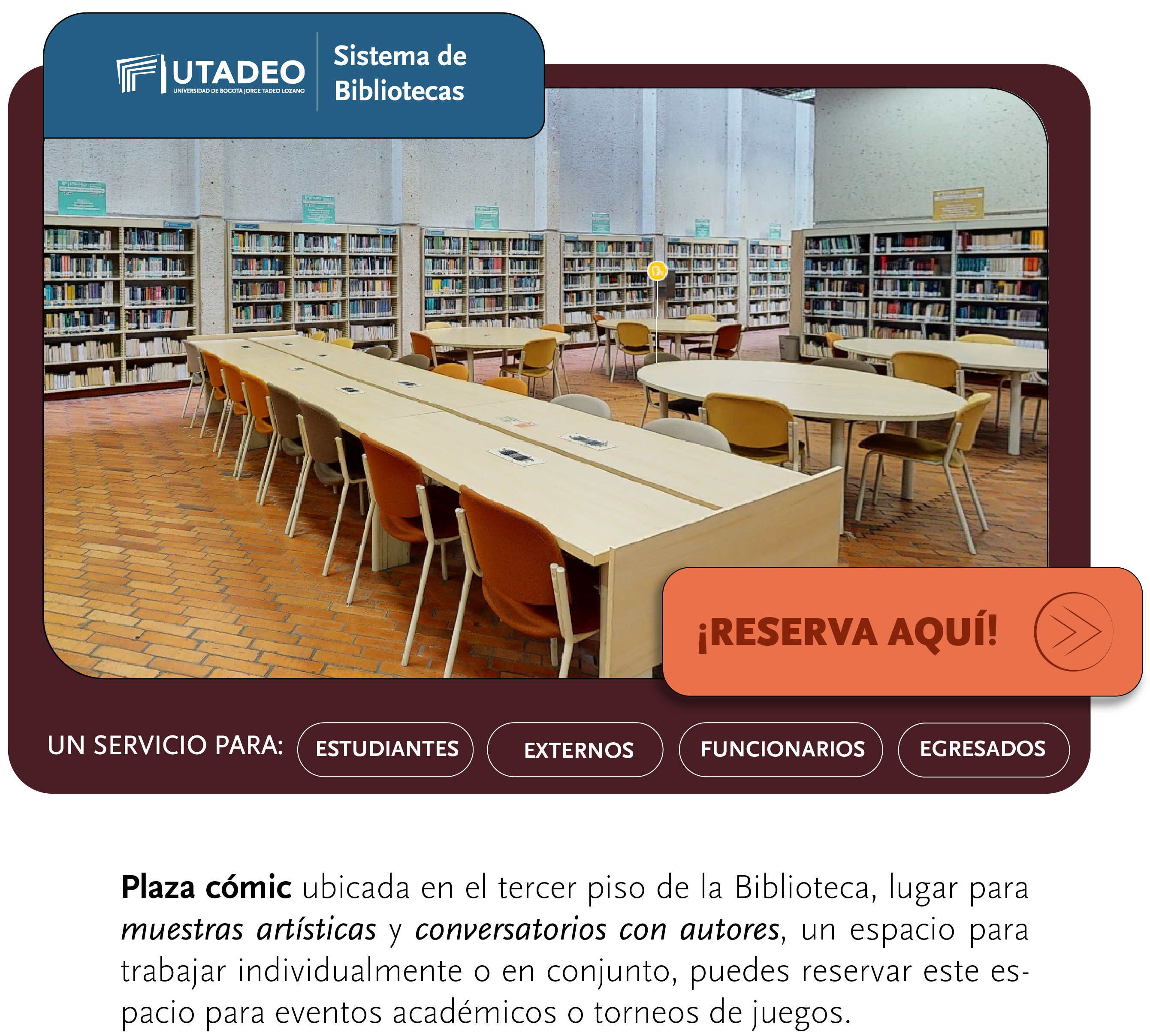 Dentro del espíritu tadeísta y en aras de obtener niveles de excelencia en el proceso de búsqueda de información y conocimiento, la Biblioteca pone a disposición de su comunidad académica una amplia gama de servicios en permanente actualización. Nuestro objetivo es brindar un espacio inclusivo y acogedor donde las personas puedan aprender, crecer y conectar con otros