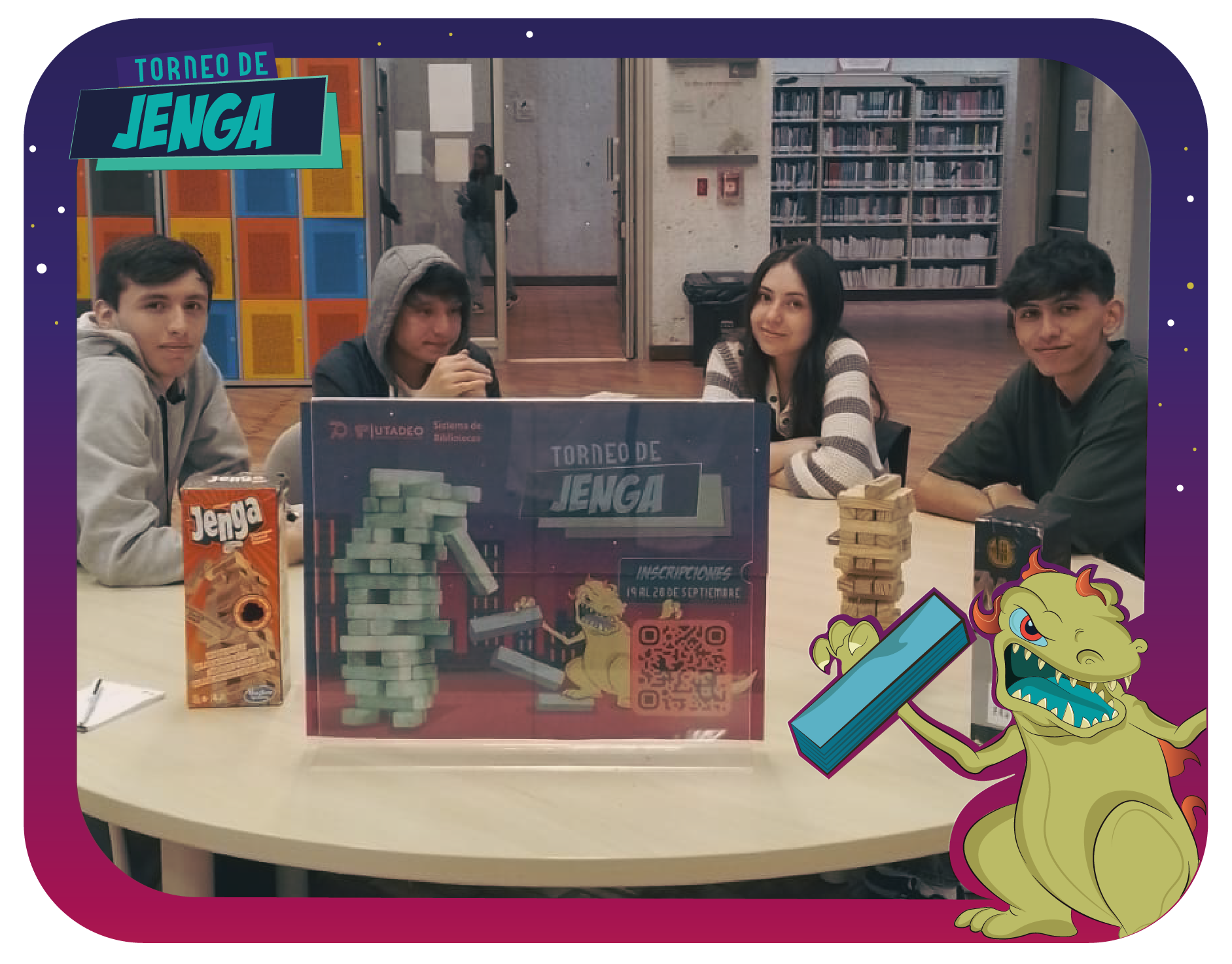 En el primer Torneo de Jenga de la Biblioteca Utadeo, dirigido a la comunidad Tadeísta —que incluye estudiantes, egresados, administrativos y docentes— buscamos fomentar la integración y el trabajo en equipo. El evento tuvo como objetivo desarrollar diversas habilidades mientras se disfrutaba de momentos de esparcimiento y conexión entre los participantes. Durante cuatro días, los asistentes se enfrentaron a emocionantes desafíos, demostrando su destreza y compromiso. Este torneo no solo promovió el fortalecimiento de competencias, sino que también contribuyó a consolidar los lazos dentro de la comunidad Tadeísta. ¡Gracias a todos los que participaron y hicieron de este evento un éxito! |