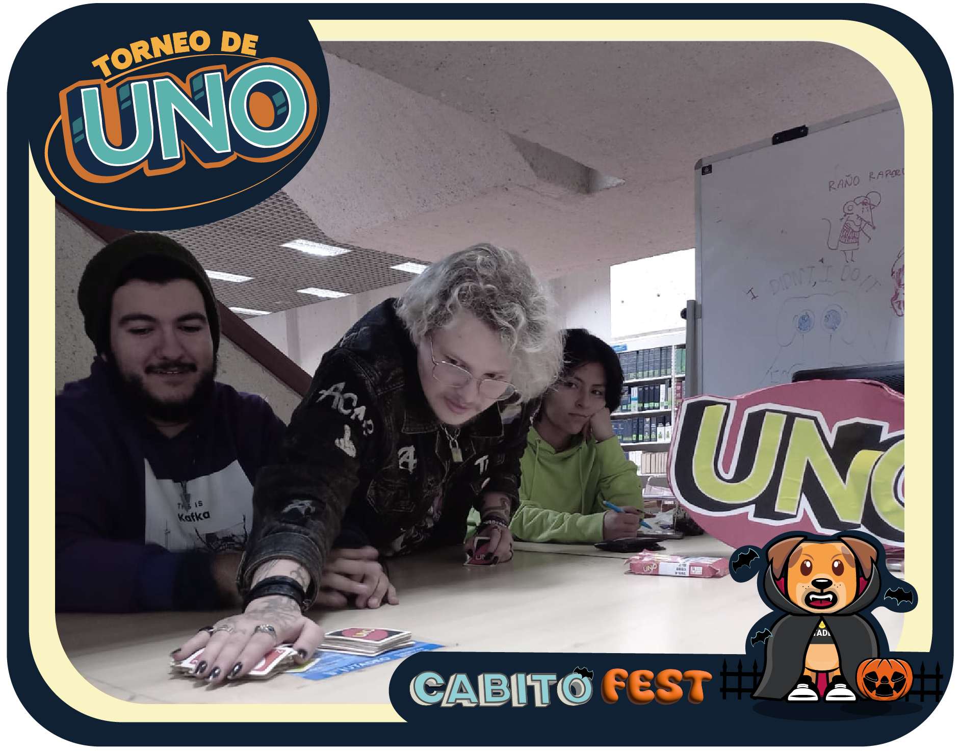 Durante el mes de octubre en la nuestra jornada de Cabito Fest, la Biblioteca Utadeo fue el escenario del Torneo de UNO EXPRESS, una competencia que reunió a 12 participantes dispuestos a poner a prueba su rapidez y estrategia en este dinámico juego de cartas. Tras una intensa jornada, el torneo culminó con una emocionante final, donde los jugadores demostraron no solo su habilidad para jugar, sino también su capacidad para tomar decisiones rápidas y adaptarse a los cambios constantes del juego. Este evento tuvo como objetivo fomentar la agilidad mental, la toma de decisiones estratégicas y, sobre todo, la sana competencia, todo en un ambiente de camaradería entre los tadeístas. Desde el Sistema de Bibliotecas Utadeo, nos esforzamos por crear espacios que estimulen tanto el aprendizaje como el entretenimiento, brindando a nuestros estudiantes una experiencia divertida y enriquecedora más allá de las actividades académicas.