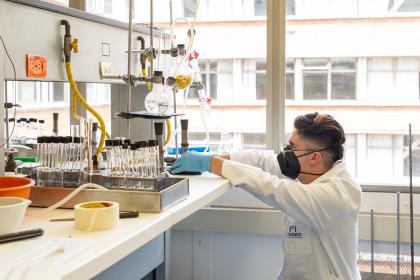 Clase en los laboratorios del módulo 5, protocolos de bioseguridad