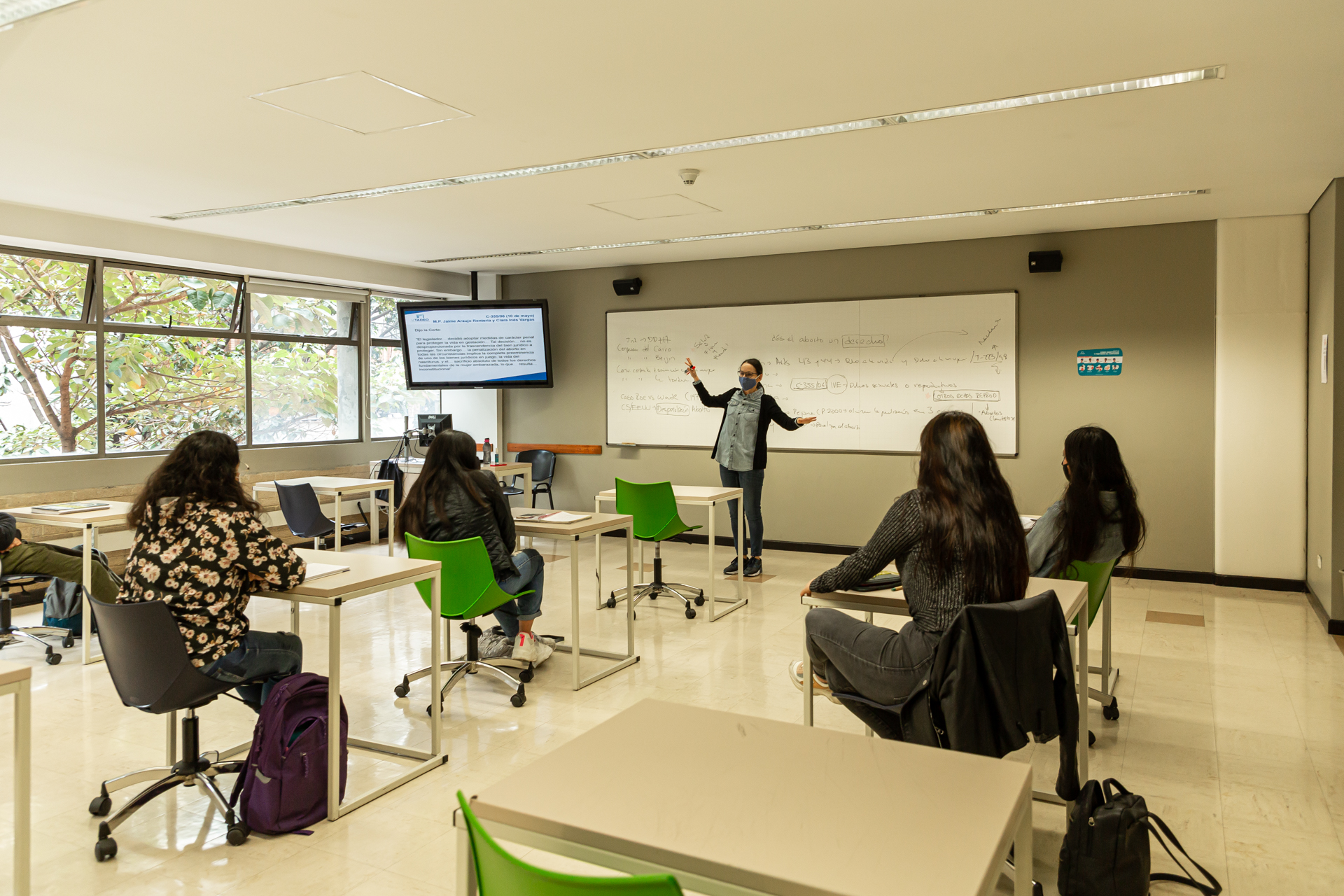 Clase en los laboratorios del módulo 5, protocolos de bioseguridad