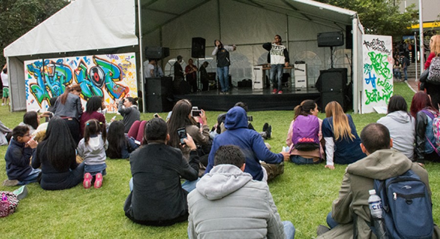 Finalmente, la música se tomó la Tadeo entre sonidos andinos, urbanos, de electrónica o techno. Y los tadeístas tuvieron la oportunidad de vivir una fiesta dentro de la universidad, una fiesta que agrupó varias experiencias musicales y dancísticas. Esa música unió a la comunidad tadeísta alrededor de propuestas dinámicas que crean espacios multiculturales, en los que se rescata y respeta la diferencia. |
