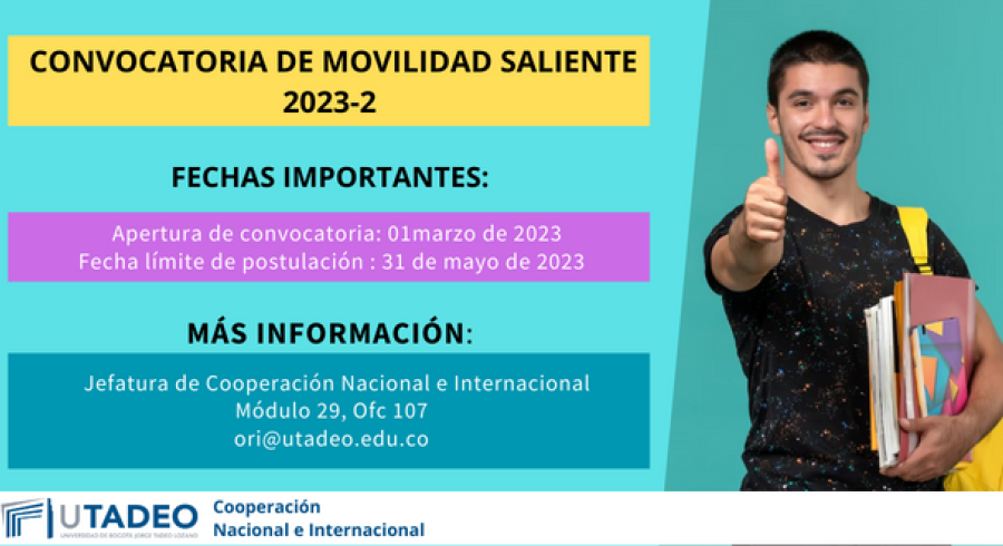 ConvocatoriasCONVOCATORIA DE MOVILIDAD SALIENTE 2023-2 Compartir en Viernes, Marzo 31, 2023Cumple tus sueños para el 2023-2 y realiza tu movilidad tanto nacional como internacional