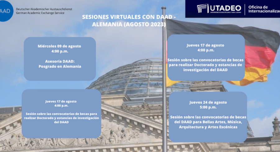 Desde la oficina de Internacionalización invitamos a la comunidad Tadeista a participar en la sesiones virtuales que ofrece DAAD.