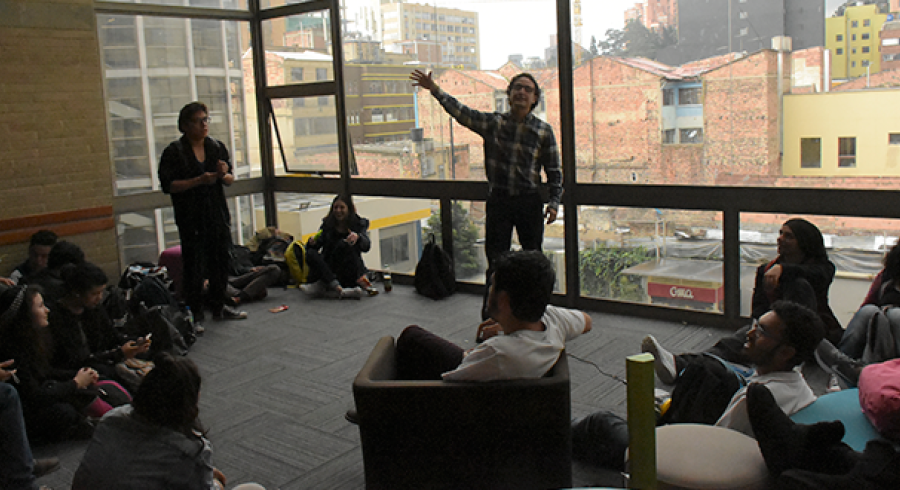 Los estudiantes de los talleres de Narración Oral del Centro de Arte y Cultura Utadeo (guiados por Juan Sebastián Alejandro Estupiñan) se dieron cita en el Módulo 7 de la universidad para rescatar el arte oral de la narración, como una herramienta que ayuda a dejar atrás los miedos y aventurarse a compartir con otros, algunas experiencias propias, anécdotas y algunos cuentos que son el resultado de la creatividad tadeísta.