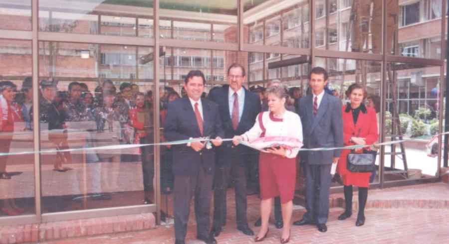 Como parte de la Ceremonia Inuagural de la Olimpiada Tadeísta en agosto del año 1994, el rector de entonces, doctor Evaristo Obregon Garcés, hoy miembro del Consejo Directivo cortó la cinta con la que se inauguro la actual entrada principal de la Universidad. El Portico, diseñado en tres arcos sucesivos y una nave central que alberga la recepción de la Universidad representa las cuatro grandes Facultades de UTadeo: Ciencias Sociales y Jurídicas, CIencias Económico Administrativas, Ciencias Naturales e Ingenierías y Arte y Diseño. En la fotografía tambien aparecen el Secretario General de la época y exdirector de Coldeportes Oscar Azuero Ruiz, la Directora de entonces del Programa de Contaduría, Genoveva de Constain, el Jefe de la Oficina de Deportes, Luis Eduardo Mantilla y la recordada Clarita Cifuentes, secretaria de Deportes por Muchos años. Si quieres estar enterado de todo los que pasa en Deportes de UTadeo, síguenos en facebook. Buscanos como Deportes UTadeo.