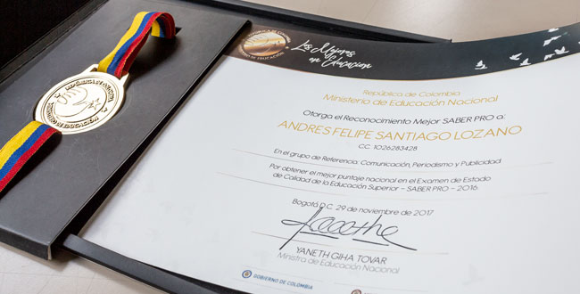 El tadeísta obtuvo el puntaje más alto en las Pruebas Saber Pro, en el área de Comunicación, Publicidad y Periodismo.