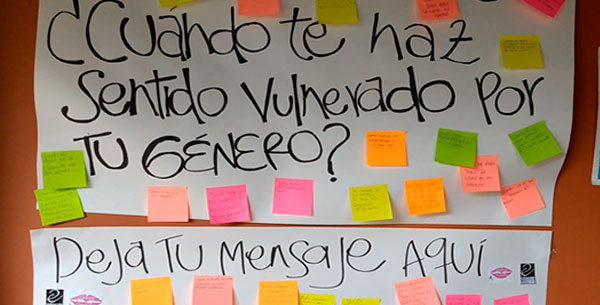 En un ejercicio simbólico que buscaba “enterrar” la discriminación y el machismo, los estudiantes tuvieron un espacio para contar los hechos del día a día en el que se han sentido vulnerados por su género, sexo u orientación sexual. Esta actividad reunió las voces de la comunidad en una cartelera al aire libre, que posteriormente se rompió como una analogía a acabar o enterrar la discriminación.