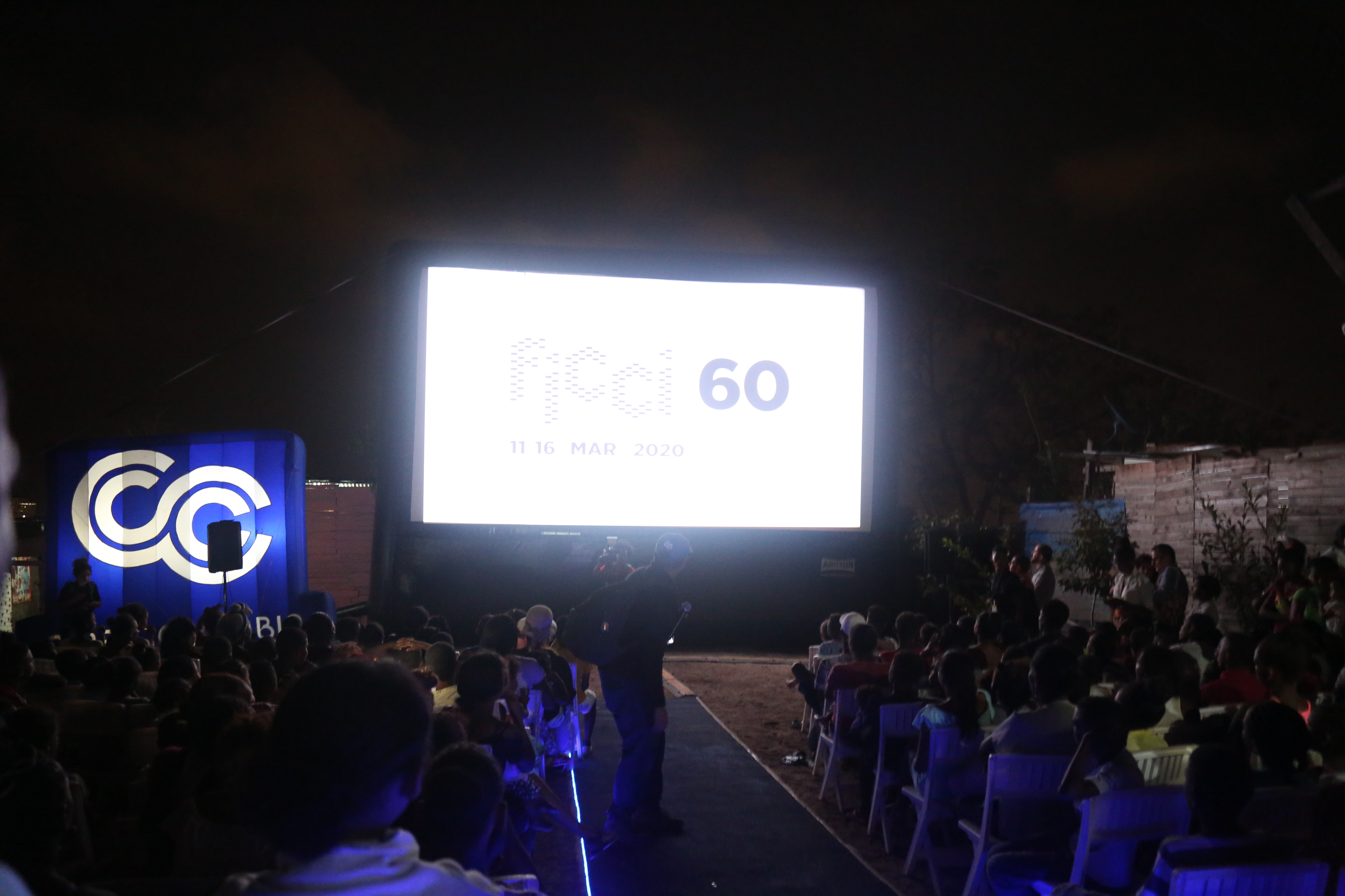 En la noche, ya todo estaba listo para el tan esperado estreno. Todos los niños estaban sentados en primera fila, los adultos, detrás de las sillas, escuchaban con atención las palabras de Yuldor que pasó al frente. –Estoy muy emocionado, no se imaginan la felicidad que siento, a todo mi equipo y a todas las personas de esta comunidad, muchas gracias– dijo Yuldor con una voz entre cortada. Sin más que decir, se inició la proyección de la película, inaugurando “Cine en los barrios” del Festival Internacional de Cine de Cartagena de Indias. No obstante, los directores del festival partieron minutos después de haber iniciado la película, pues no se podían perder la inauguración “real” del festival en el Teatro Alfonso Mejía dentro de la ciudad amurallada. Partieron como llegaron, en silencio. Minutos después, nos marchamos también, pues debíamos cubrir esa ceremonia de igual manera.