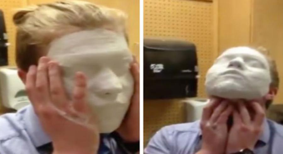 Los estudiantes, que se encontraban en una clase de arte 3D, estaban ensayando con una máscara de yeso pero cometieron un error, el estudiante que estaba probando el material se le olvidó aplicarse vaselina suficiente para que no le pasara nada.