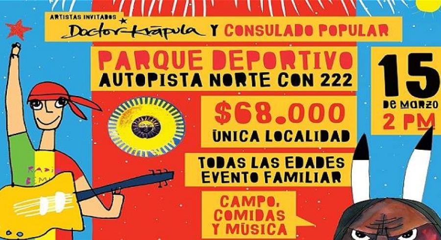 El próximo 15 de marzo Manu Chao ofrecerá un concierto en Bogotá, y regresa cargado de buenas intenciones después de el tan recordado concierto de la espeanza en la plaza de Bolivar hace aproximadamente 2 años. En esta ocasión el evento fue denominado "Día de campo", el cual se realizará desde las 2 de la tarde en el Parque Deportivo de la Autopista Norte con 222. En el evento, que contará con gran variedad de restaurantes, no se venderá alcohol porque pretende "celebrar la vida" en compañía de la familia, un evento para todas las edades donde el objetivo será dar conciencia social y ecológica contra el maltrato animal, las semillas transgénicas, la violencia de género y el maltrato infantil; el artista estará acompañado de bandas nacionales como Doctor Krápula y Consulado Popular, además de La Ventura, banda que acompaña al artista durante topda su actual gira.