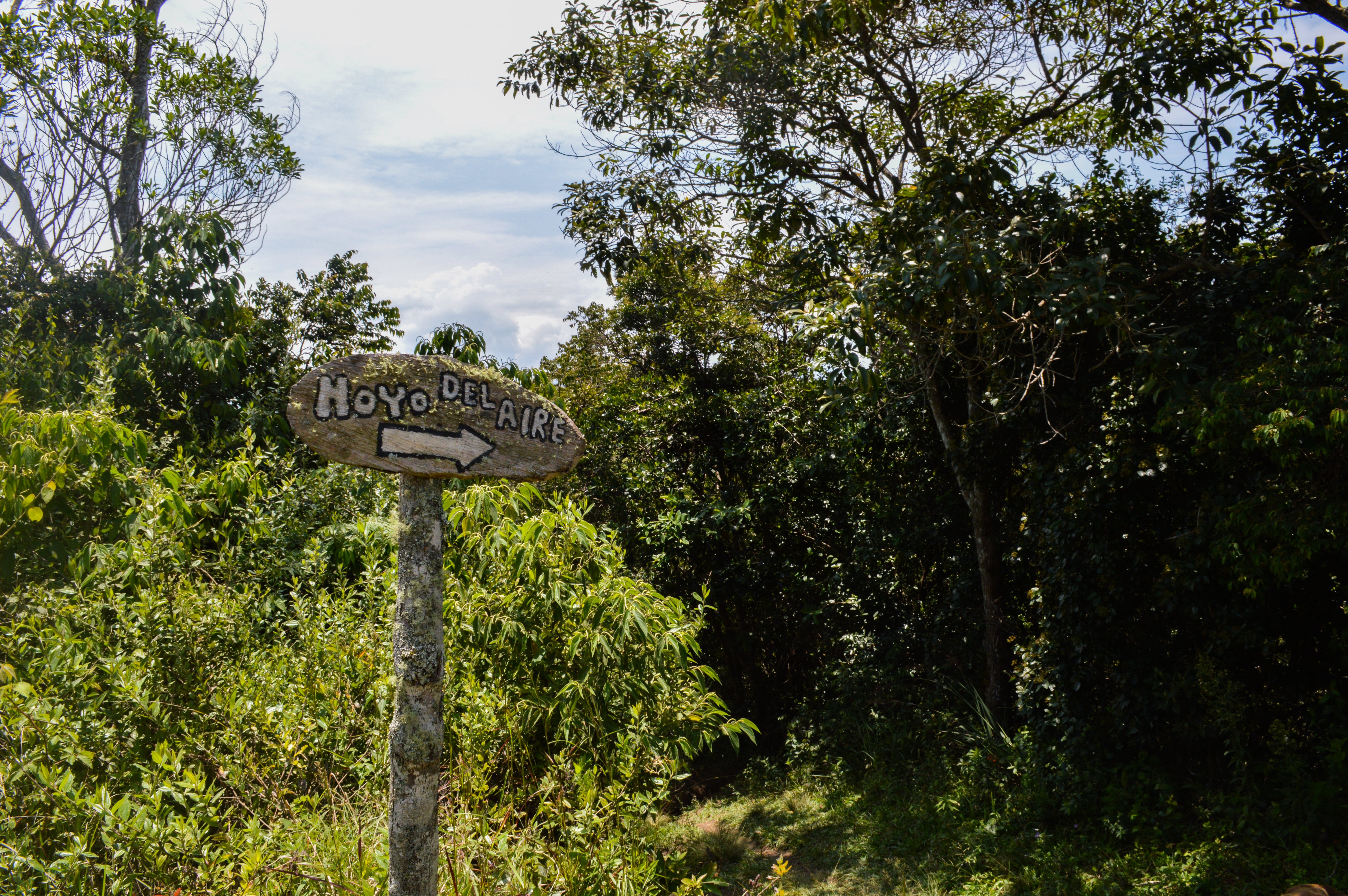 A pocos metros de llegar al Hoyo del Aire, nos volvimos a detener para esperar a Parmenio, nuestro guía de 1´70 m. Era un hombre serio, siempre con la mirada hacía el horizonte, que sabía hablar inglés. Nos contó que la zona era apetecida por extranjeros, ya que colombianos pocos se veían. En medio de su relato, habló de varias historias: paramilitares, guerrilleros, ejercito, amantes, mafia, el que qusiera arrojar a alguien, o poner fin a su vida, estaba en el lugar perfecto para volar antes de morir.