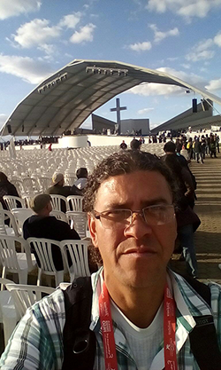 Juan Carlos “El Chato” Rivas En 1999 la sabrosura del Chato llega a formar parte del ensamble de jazz de la Utadeo como director, gracias a la invitación de su antecesor Gabriel Cifuentes, y es desde ese momento que inicia el trabajo con más de 15 estudiantes en el grupo anteriormente mencionado, y además en los ensambles de música tropical y rock para llenar de melodías la Casa Republicana. El profe Rivas pretende que sus compañeros de tarima aprendan a trabajar en grupo, que se conozcan y tengan una alternativa llena de ritmos para pasar su tiempo libre, para encontrar su talento y desarrollar la disciplina de un artista. El Chato, dirigió la banda que acompañó al coro MCU en la gran tarima del Simón Bolívar para interpretar ‘Demos el primer paso’, además de otras canciones. Allí tuvo la oportunidad de compartir otra clase de escenario con Alex Martínez, además del que ya tienen en el Centro de Arte y Cultura. Durante la eucaristía se tocaron temas reconocidos como “Jesús de Nazaret” y “tan cerca de mí” para que el público los acompañara y se sintiera identificado. La emoción y la anécdota que Rivas guardara siempre tiene que ver con el hecho de cantar frente a tantas personas, y aunque observó y vivió algunos inconvenientes logísticos logró sentir la experiencia espiritual al recibir directamente el mensaje del Papa Francisco y su bendición. Además, resalta que “servir con nuestro trabajo es la mejor manera de dar gracias a Dios”, todo conectado con la vida y la esperanza de ser mejores. |