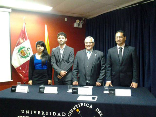 Con el apoyo de la Cámara de Integración Colombo Peruana (COLPERÚ), los 13 estudiantes participaron en un seminario en la Universidad Científica del Sur en Lima, Perú.