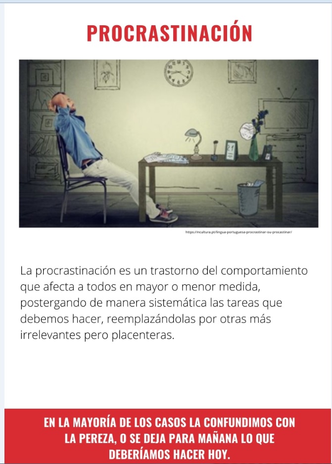 “La procrastinación hace difíciles las cosas fáciles, y hace aun más difíciles las cosas difíciles” (Mason Cooley)