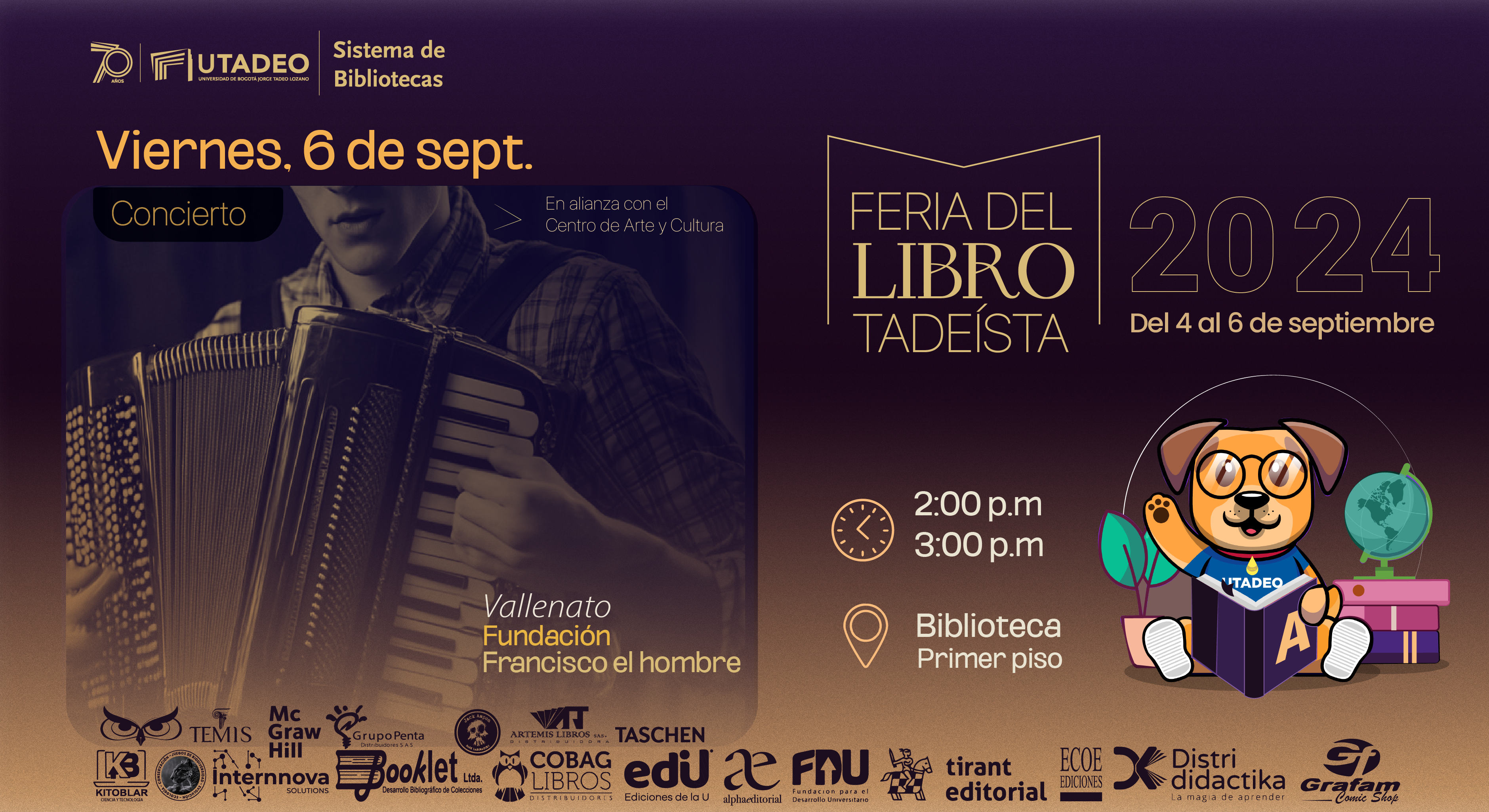 Fecha:viernes 6 de septiembre | Hora:2:00 p.m. a 3:00 p.m. | Lugar:Biblioteca, primer piso |