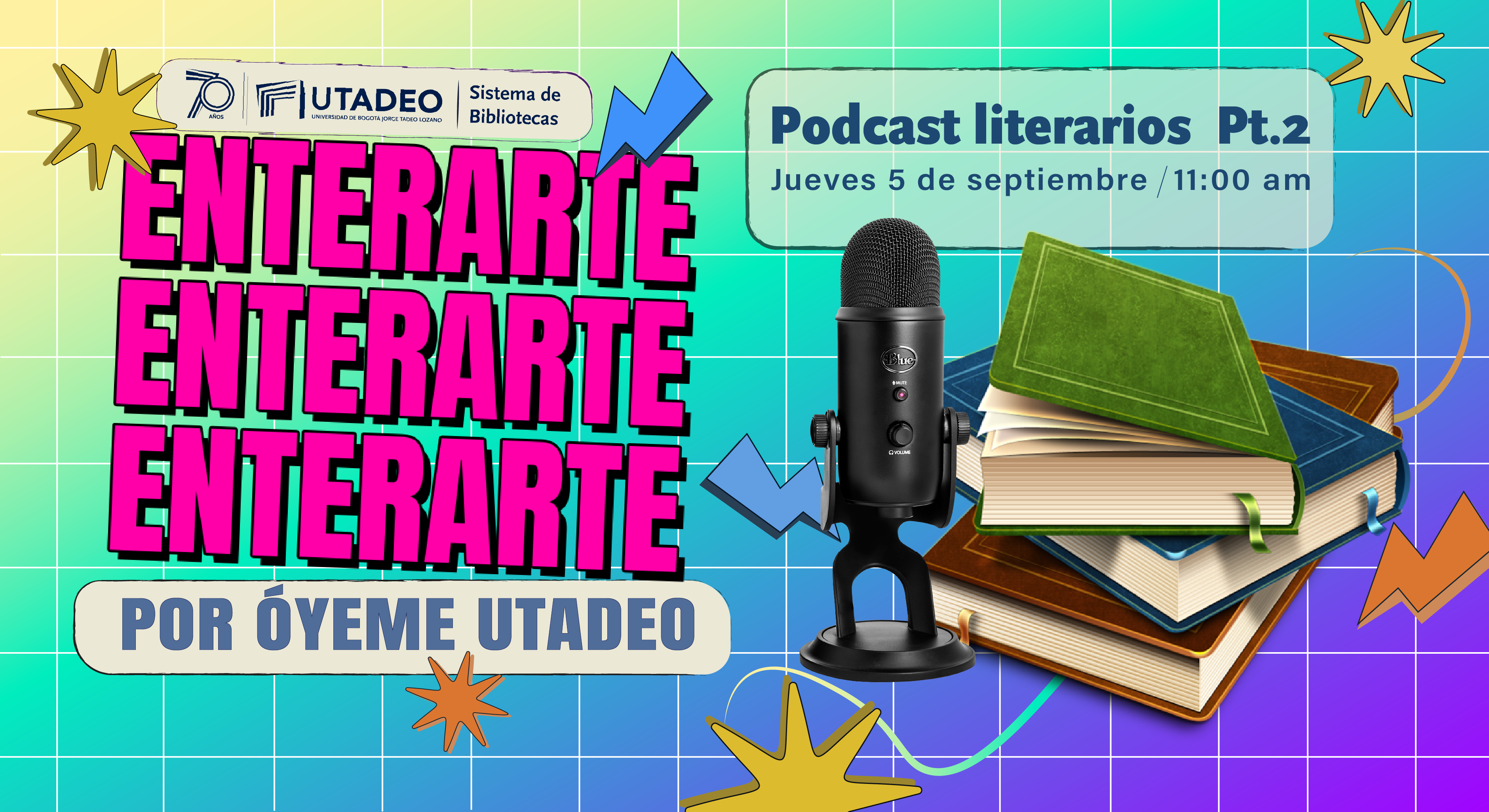 Fecha:jueves 5 de septiembre | Hora:11:00 p.m. a 12:00 p.m. | Lugar:Óyeme UTadeo |
