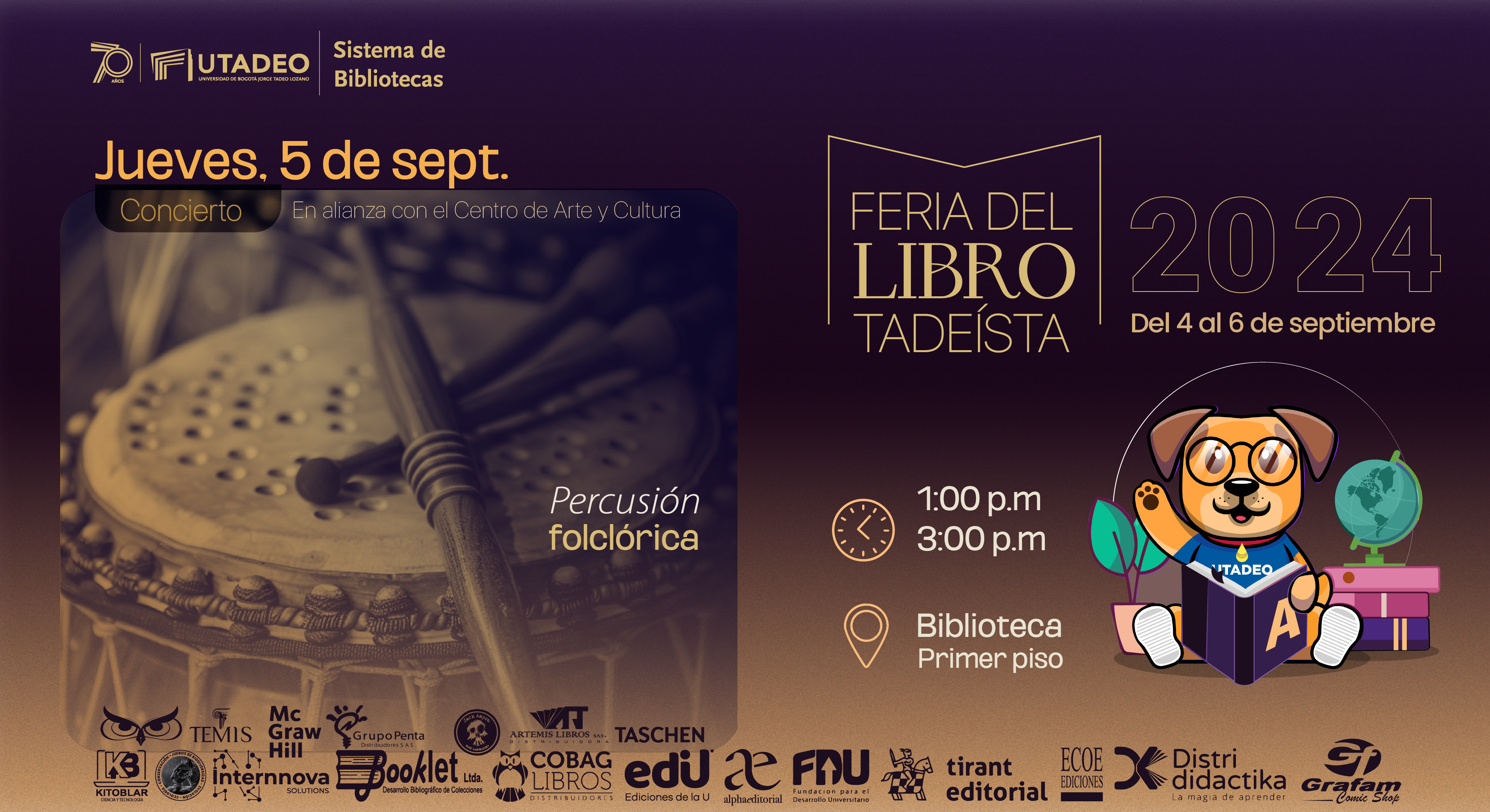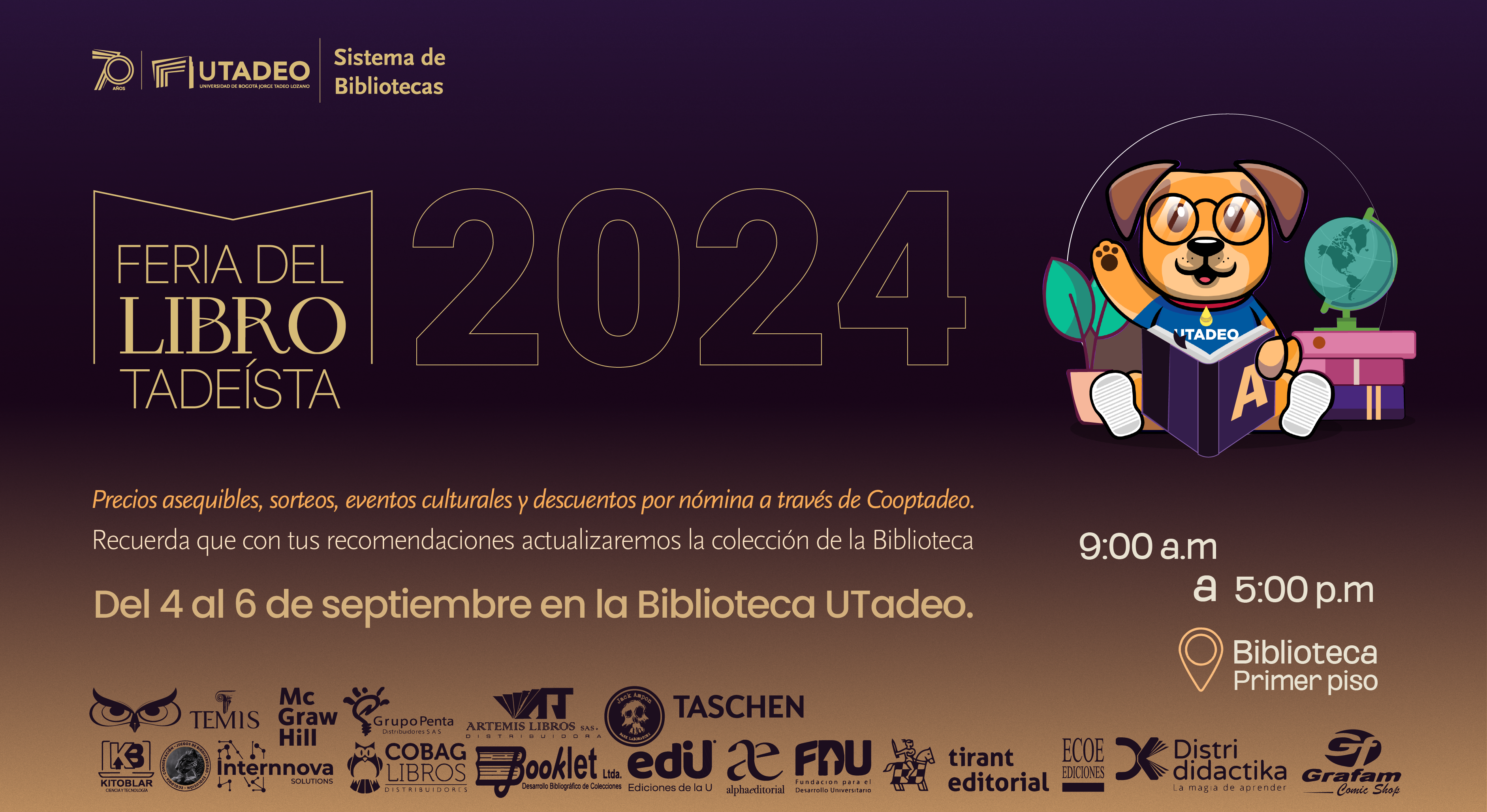 Fecha:jueves 5 de septiembre | Hora:1:00 p.m. a 3:00 p.m. | Lugar:Biblioteca, primer piso |