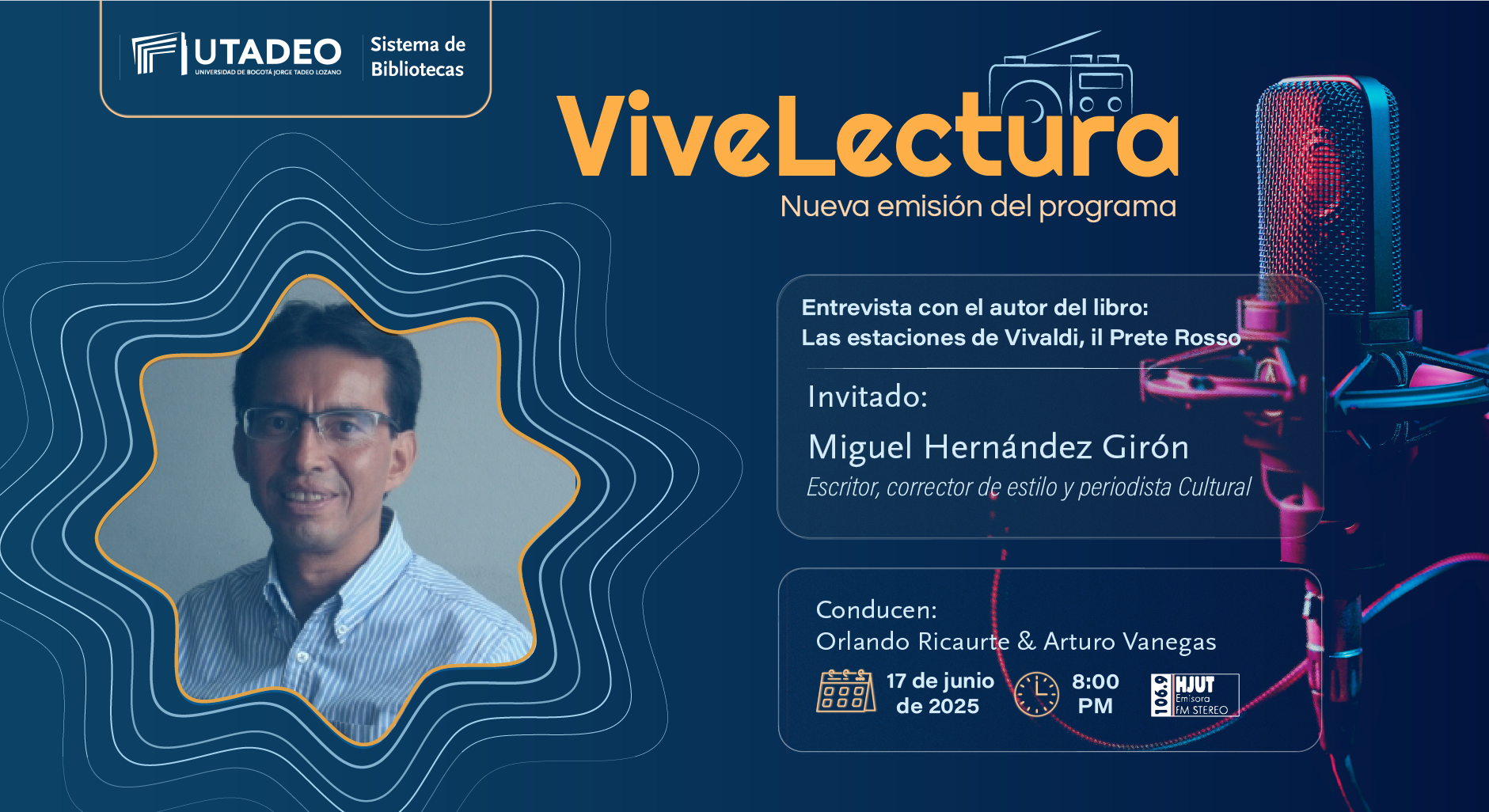 Fecha:martes 17 de junio | Hora:8:00 p.m a 9:00 p.m | Lugar:HJUT 106.9 FM Stereo |