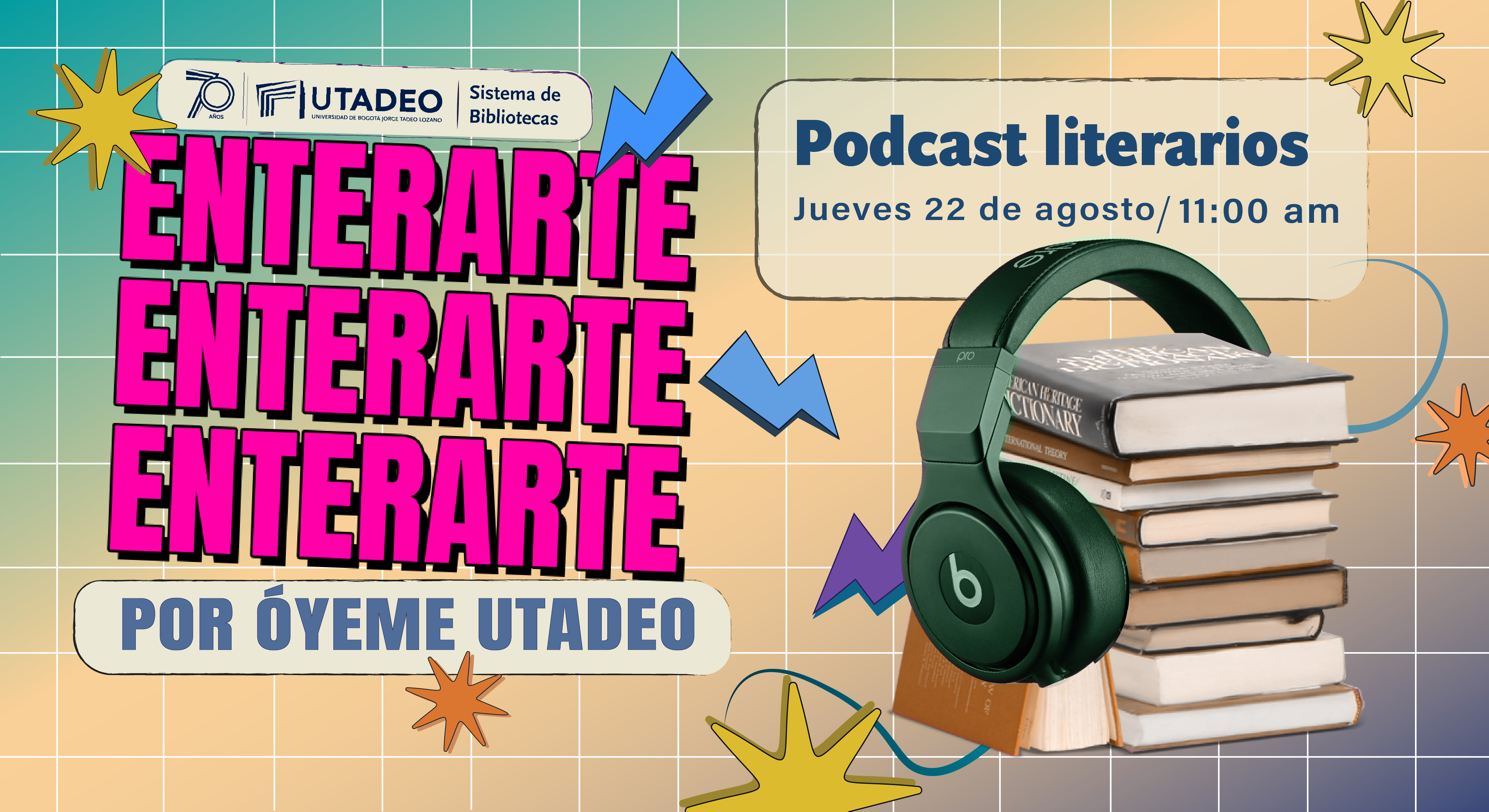 Fecha:jueves 22 de agosto | Hora:11:00 a.m. a 12:00 p.m. | Lugar:Óyeme utadeo |