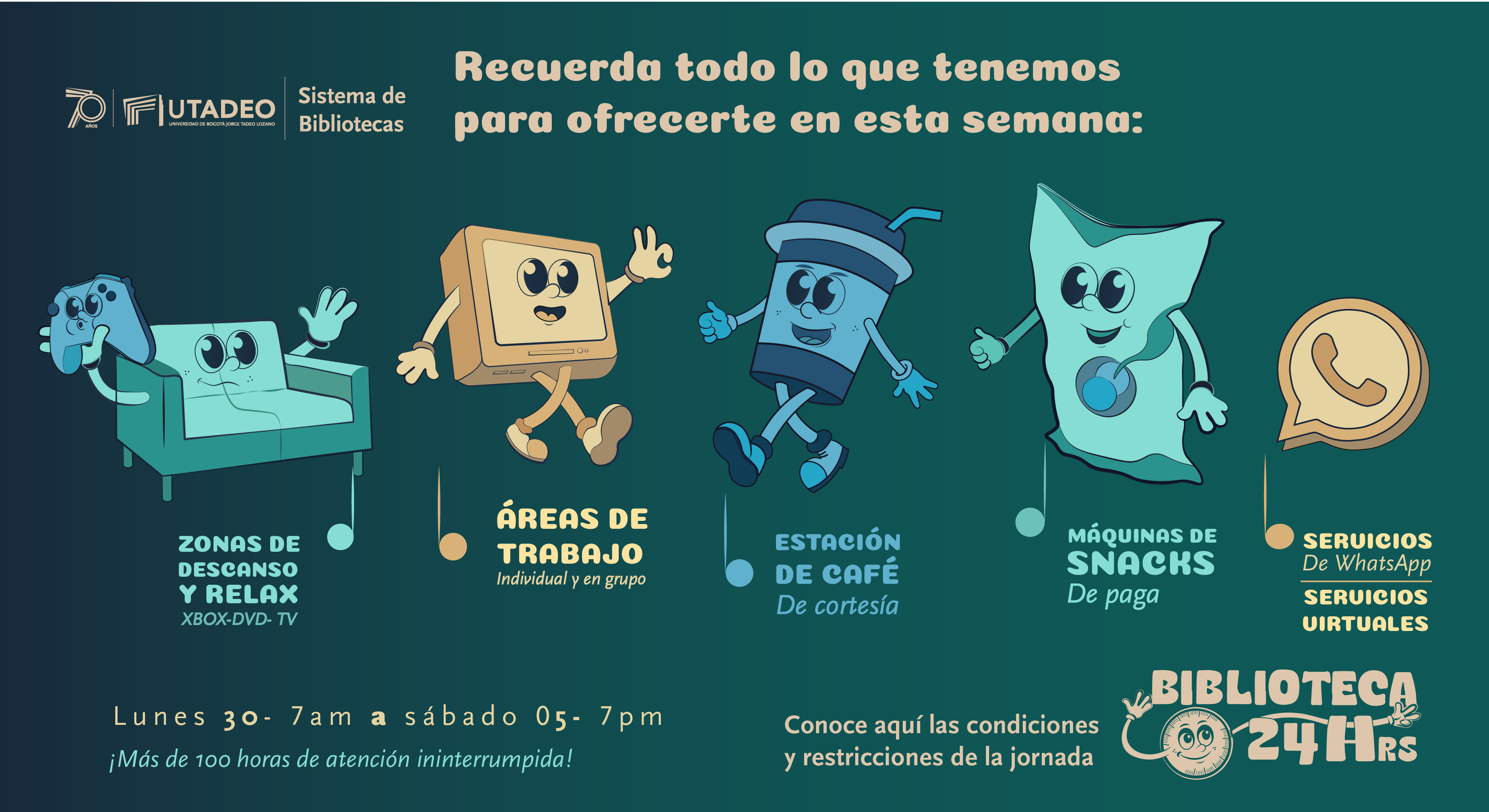 Fecha:lunes 30 de septiembre hasta Sábado 5 de octubre | Hora:7:00 a.m. a 7:00 p.m. | Lugar:Biblioteca 4 piso |