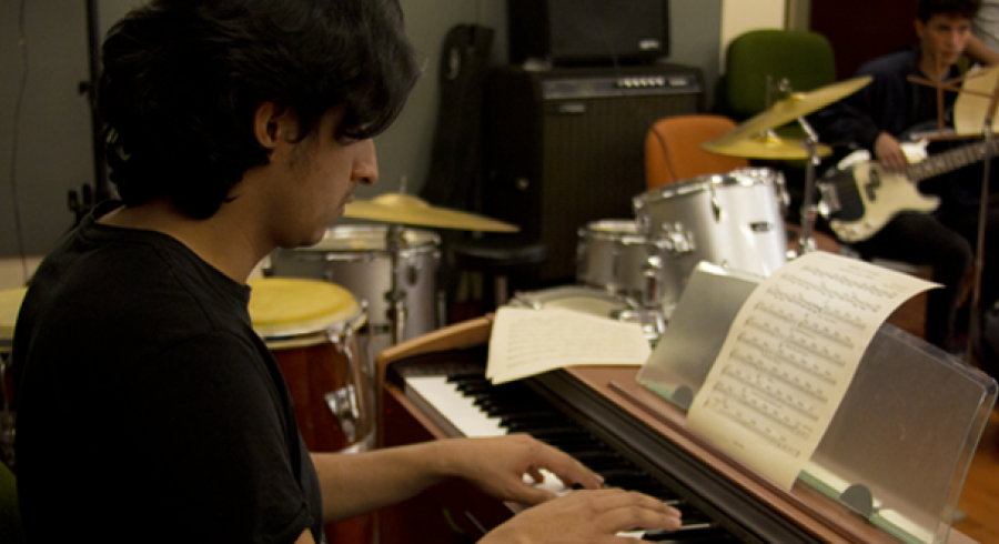 Es por eso que Alejandro llegó a la Casa Republicana a explorar sus posibilidades dentro de la Tadeo, y es así como termina entrando a formar parte del Ensamble de Jazz como pianista, generador de un programa radial en alianza con el Centro de Arte y Cultura “Con ciencia”, donde la ciencia y el arte se encuentran en Óyeme, la emisora virtual de la Tadeo; y además fue uno de los participantes en la nueva franja que el Centro de Arte y Cultura con el grupo de estudiantes del programa de Cine y televisión CINErgia, y que hacen parte de los talleres de la Casa Republicana, interpretó el piano en vivo mientras se proyectaba la película de Charles Chaplin, ‘City Lights’, fue una hora y media donde imprimía en cada acorde y melodía la emoción que se veía en la pantalla, de esta manera se hacía única la experiencia de ver cine con el Centro de Arte y Cultura.