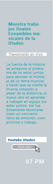 Este año todas las presentaciones van a ser virtuales por nuestras redes sociales, y son de acceso libre a todas las personas, ya que este es un espacio para compartir entre nuestros tadeístas, sus familiares y sus amigos. Allí, muchos de ellos van a recibir ese primer aplauso virtual por su trabajo, van a ver el resultado del compromiso demostrado durante este 2020 a pesar del aislamiento.