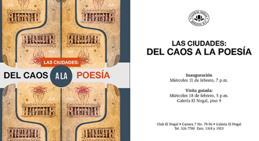 Extendemos la invitación a la exposición colectiva "Las ciudades: del caos a la poesía", curada por nuestro profesor Andrés Gaitán. La inauguración es el miércoles 11 de Febrero a las 7:00 pm en la galería del Club el Nogal. En la muestra participan algunos profesores y egresados tadeístas. Habrá también una visita guiada por la esposición el miércoles 18 de febrero a las 5:00 pm en la galería.