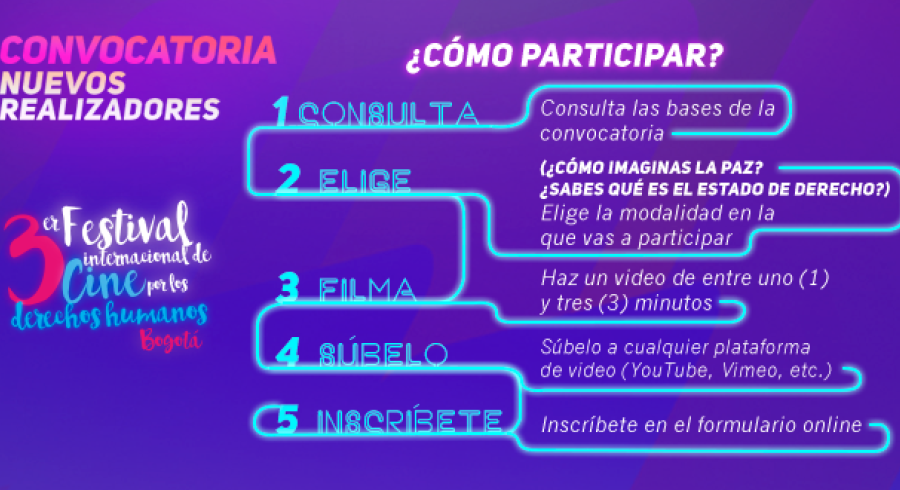 La convocatoria está dirigida a estudiantes de diferentes disciplinas y aficionados de la realización audiovisual que aporten a la construcción de ideas para la paz contándole al mundo cómo se imaginan la paz y cuál es su percepción sobre el Estado de Derecho.