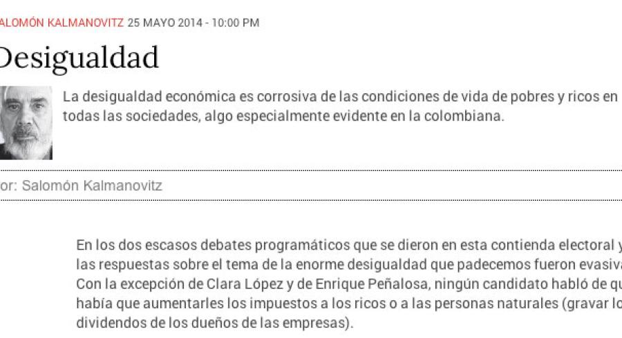 El profesor emérito de la UJTL, Salomón Kalmanovitz publicó su columna de opinión, en la que habló sobre la desigualdad económica que vive actualmente el país.