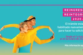 NovedadesDiciembre 11 / 2019Desde el 7 de enero y hasta el 20 de enero de 2020 puedes realizar tus trámites de Reingreso y Reintegro, para el primer período académico del año 2020.