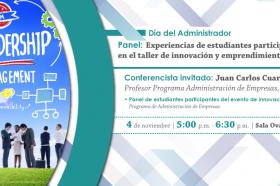 NovedadesNoviembre 03 / 2015Los estudiantes del Programa de Administración de Empresas organizaron el Panel "Experiencias de estudiantes participantes en el taller de innovación y emprendimiento 3D" con el conferencista Juan Carlos Cuartas.