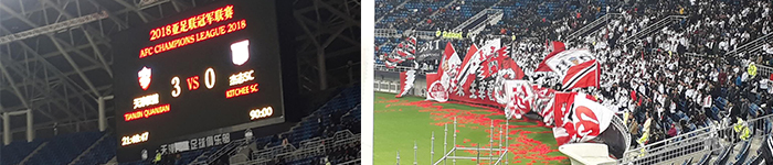 Antes de retomar los estudios tuve la oportunidad de ir al estadio de futbol de Tianjin, donde presencié del partido entre el Tianjin Quanjian (天津权健) contra el equipo de Hong Kong, el Kitchee. A pesar de que el estadio no estaba lleno el ambiente fue fenomenal de todas formas, los chinos hoy en día están muy interesados en el fútbol y los hinchas del equipo local no paraban de alentar durante en todo el partido.