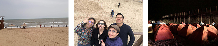 El segundo viaje que realice fue junto con Lizet, Ernesto y la profesora叶昱彤 (Ye Yutong). Fuimos a la playa de Beidaihe (北戴河) en la provincia Hebei (河北) allí estuvimos dos días. En ese lugar compartimos con personas de diferentes nacionalidades, realizamos varias actividades, comimos barbacoa china (烧烤), y lo mejor de todo fue que acampamos en la playa.