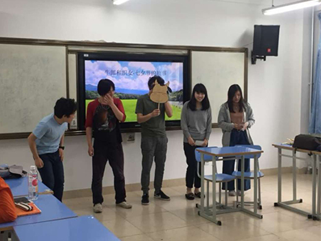 La mejor parte del semestre fue cuando tuvimos que actuar, interpretamos la leyenda china “El vaquero y la tejedora” (牛郎织女) que narra el origen del día de los enamorados. Mi grupo estaba conformado por cuatro japoneses y yo, a pesar de que la comunicación no fue fácil nos divertimos demasiado y al final la obra fue un éxito.