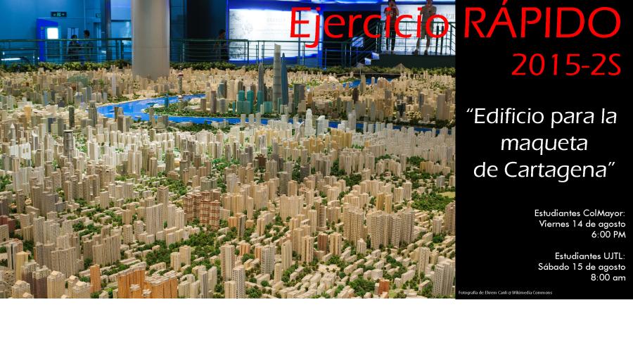 Los días 14 y 15 de agosto se realizará el tradicional Rápido de Arquitectura. El objetivo central de esta actividad del programa, es diseñar un proyecto arquitectónico de pequeña escala, donde los estudiantes demuestren competencias en los diferentes saberes de la arquitectura de acuerdo a su nivel de formación, a través de un ejercicio  proyectual relacionado con la ciudad de Cartagena y sobretodo con los condicionantes turístico, patrimoniales y ambientales del entorno; abordando así, temas de gran trascendencia en el desarrollo de la ciudad del siglo XXI.